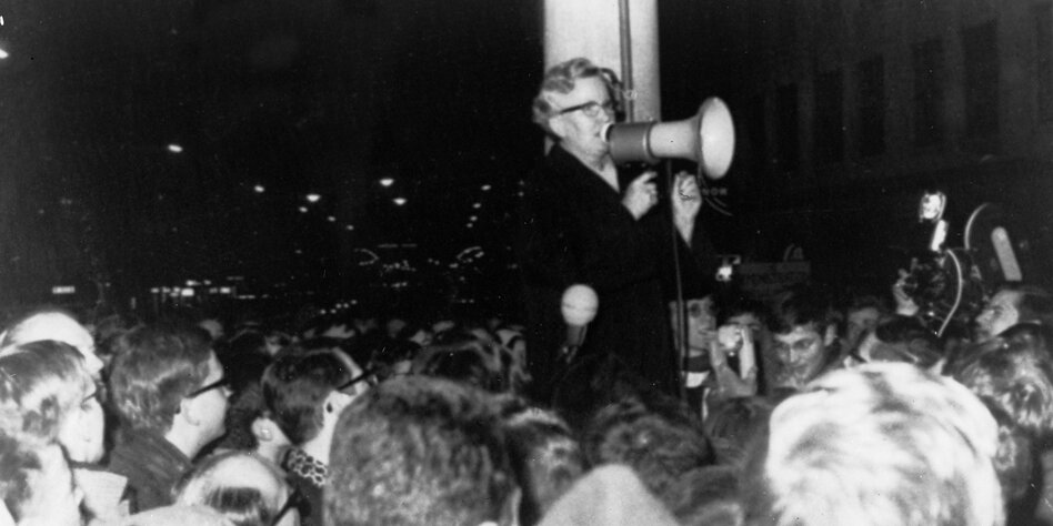 (IMG) Bild: In Bremen protestrierten sie 1968 gegen Fahrpreiserhöhungen. Senatorin Annemarie Mevissen spricht zu den Demonstranten