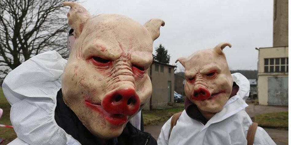 (IMG) Bild: Schon 2015 protestierten Aktivisten vor dem Schweinehochhaus
