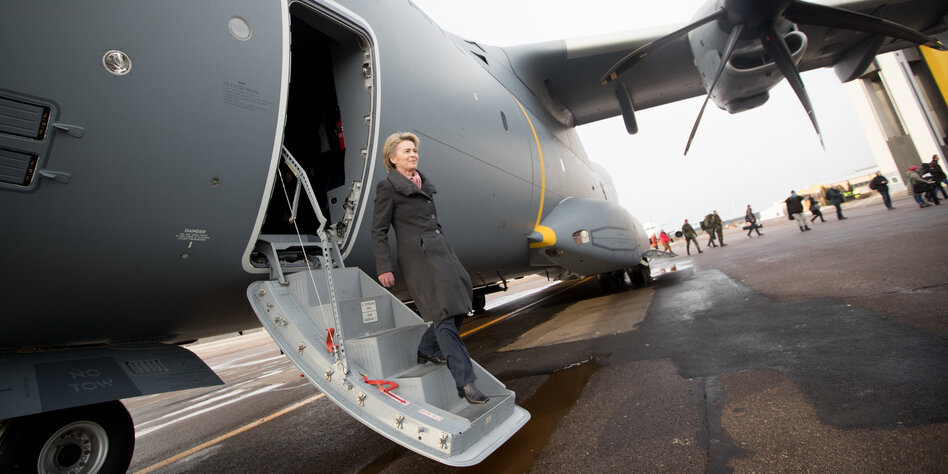 (IMG) Bild: Dass Verteidigungsministerin Von der Leyen den A400M liebt, nützt auch nichts. Der Militärtransporter macht Probleme