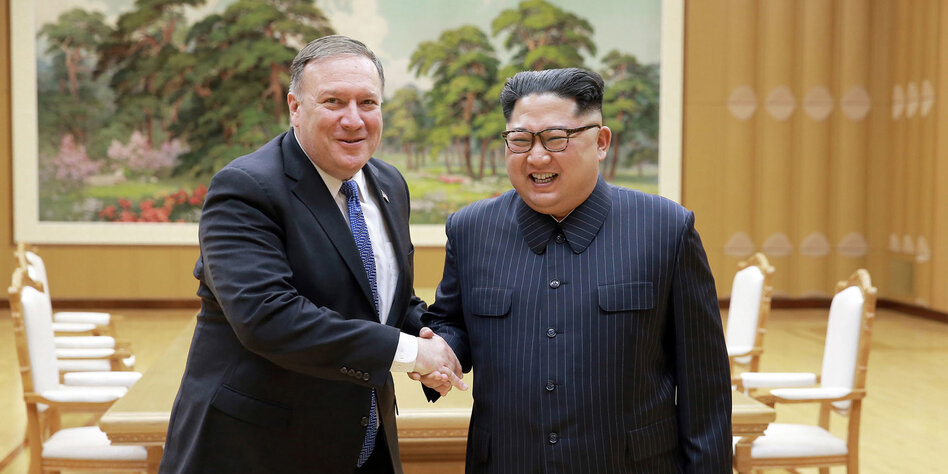 > Pompeo mit Nordkoreas Machthaber Kim Jong Un. Mit erstem Erfolg.