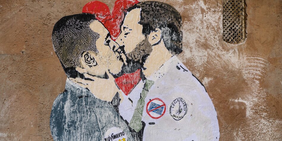 (IMG) Bild: Bruderkuss der Populisten: Ein Grafitto zeigt Luigi di Maio und Matteo Salvini