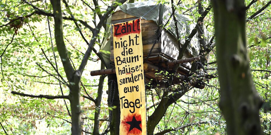 (IMG) Bild: Baumhaus von Braunkohle-Gegnern im Hambacher Forst; eine Räumung sei nicht geplant, heißt es
