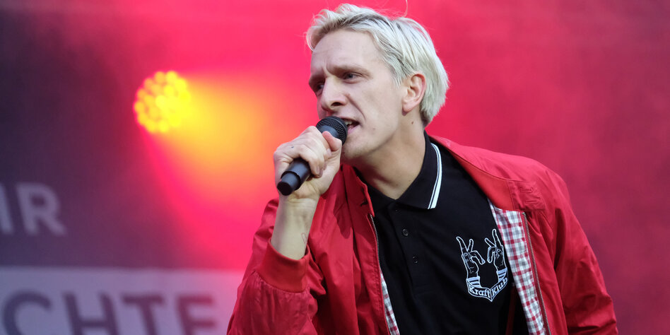 Felix Brummer, Sänger der Band „Kraftklub“, die hier lebt und das Konzert