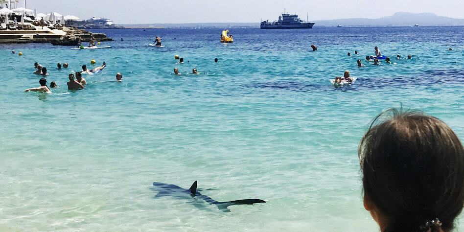 (IMG) Bild: Grund zur Sorge? Ein Hai schwimmt in Palma de Mallorca am Illetes Strand