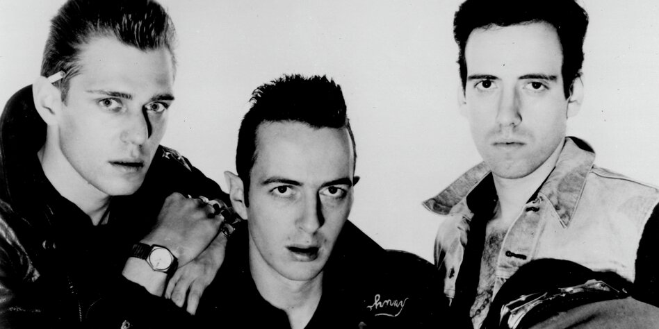 (IMG) Bild: Joe Strummer (Mitte) mit Paul Simonon zur Linken und Mick Jones zur Rechten bei The Clash, 1982