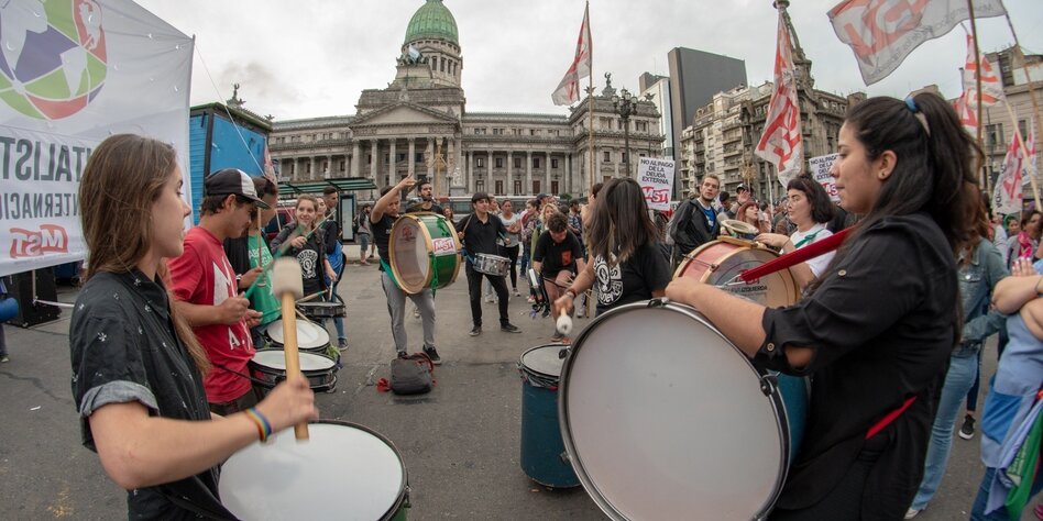 (IMG) Bild: Junge Menschen protestieren vor dem argentinischen Kongress gegen den G20-Gipfel