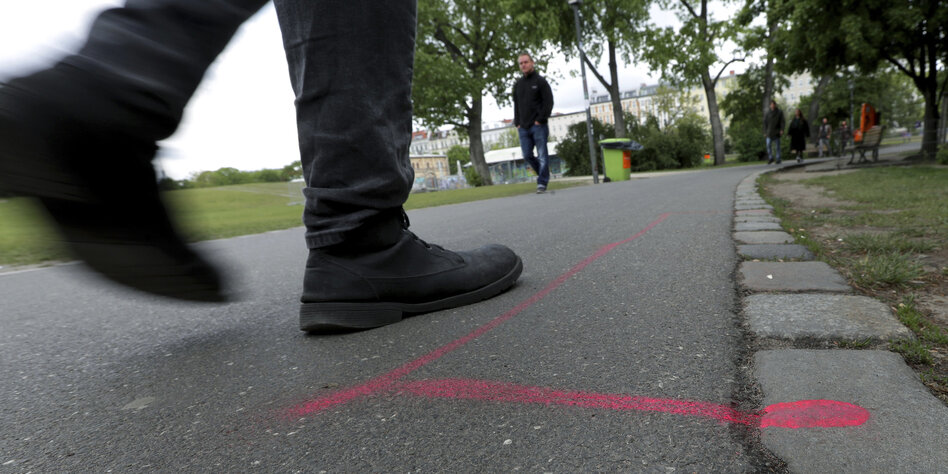 Linien auf dem Asphalt, die Stehplätze für Dealer markieren sollen. Zwar