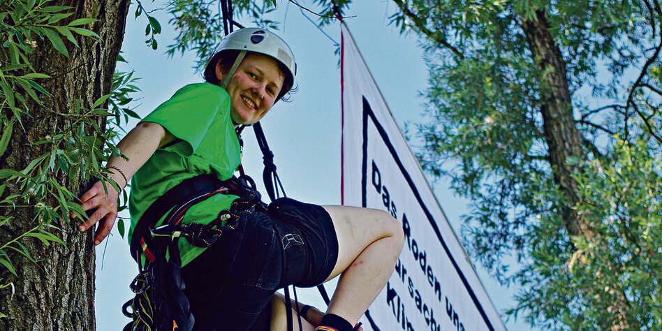 (IMG) Bild: Baumfreundliche Kletteraktion der Bürgerinitiative Waldschutz