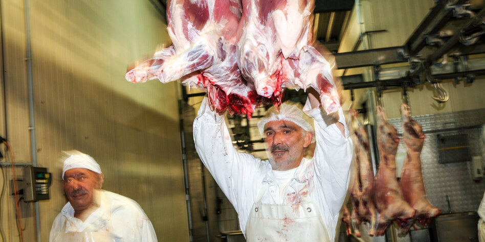 das Töten ihr Beruf. Sie entfernen Hufe und Kopf, ziehen die Haut ab: Mit