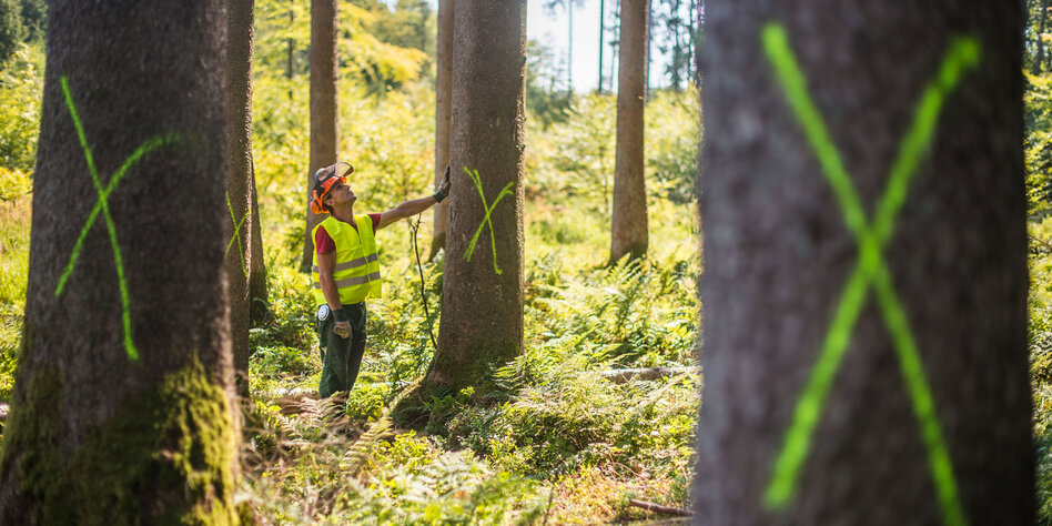 Förster wählen mit der Säge aus, welche Bäume die angeblich besten
