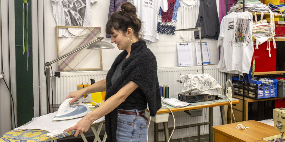(IMG) Bild: Kreativ am Bügelbrett: Die Produktion läuft im Textilhafen an der Storkower Straße