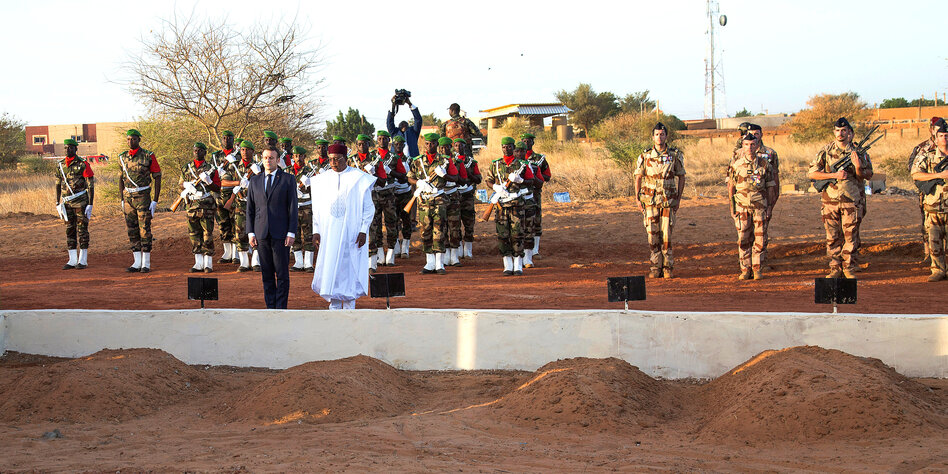 Frankreichs Präsident Emmanuel Macron in Niger die gefallenen Soldaten