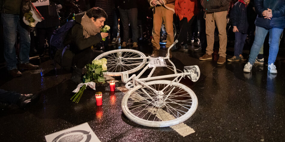 (IMG) Bild: Gedenken einer Fahrradfahrerin nach einem tödlichen LKW Unfall in Berlin