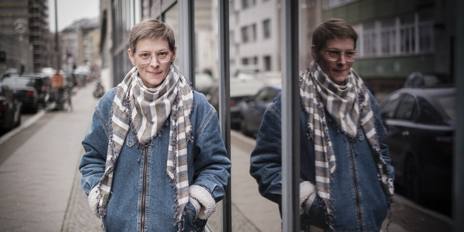 (IMG) Bild: Sabine Herpich, hier vor dem fsk-Kino. Beim Drehen ihrer Filme macht sie meistens alles allein.