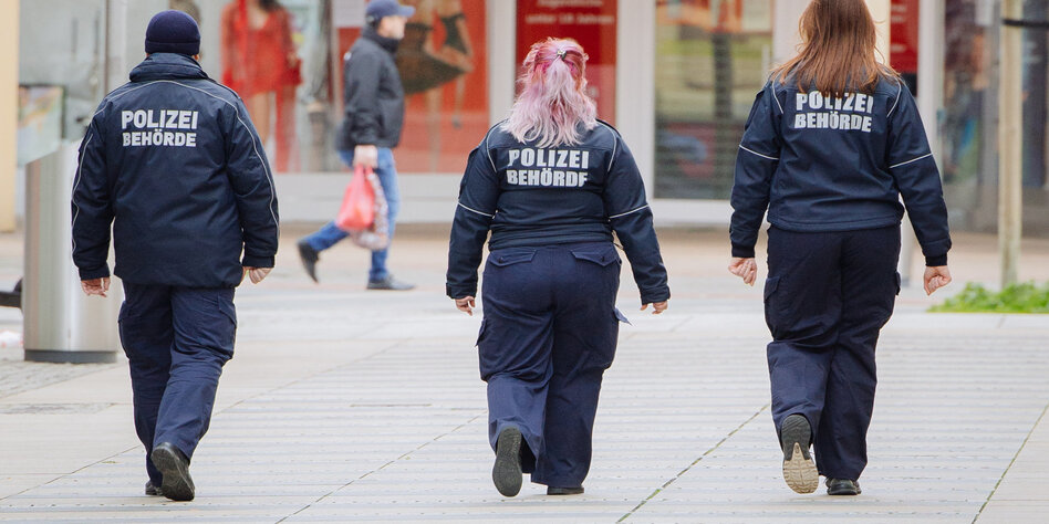 (IMG) Bild: Das Ordnungsamt in Dresden auf Kontrollgang. Die Ausgangssperre könnte noch eine Weile andauern