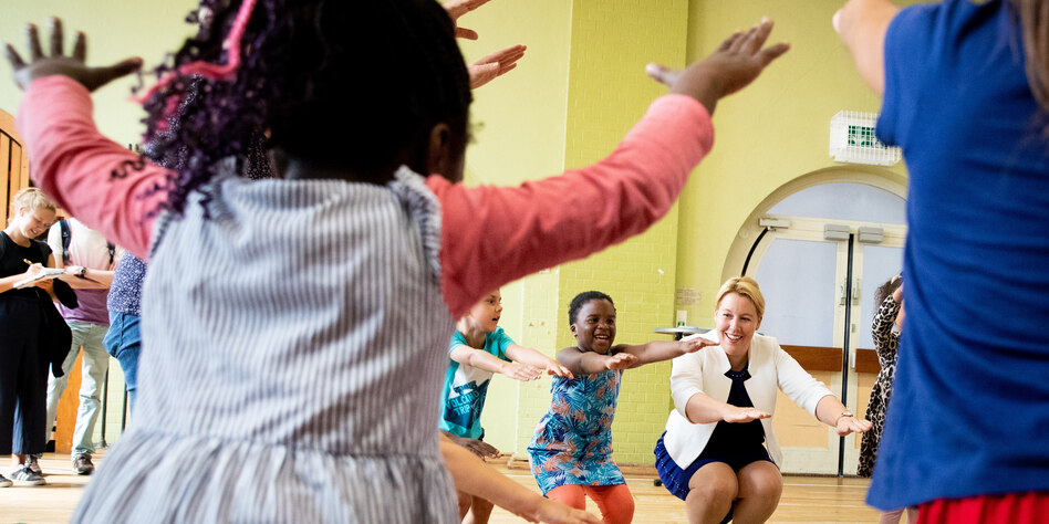 (IMG) Bild: In der Kita haben Kinder Spaß, wie hier beim Besuch von Familienministerin Franziska Giffey (SPD)