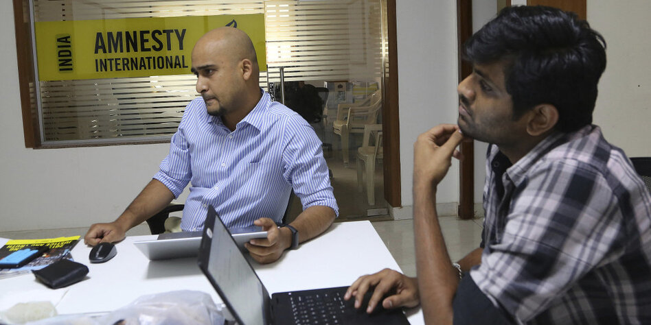 (IMG) Bild: Mitarbeiter von Amnesty International in ihrem Hauptquartier in Bangalore im Februar 2019
