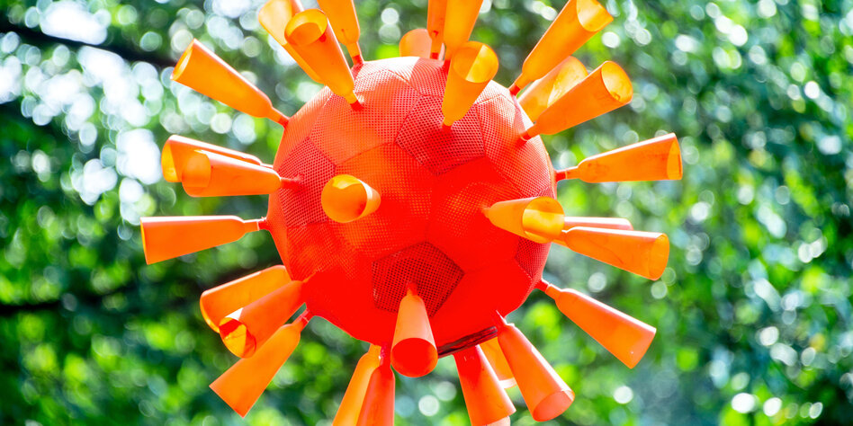 (IMG) Bild: Da hat sich jemand den Virus schöngebastelt – gesehen bei einer Demo gegen die Corona-Maßnahmen in Hannover