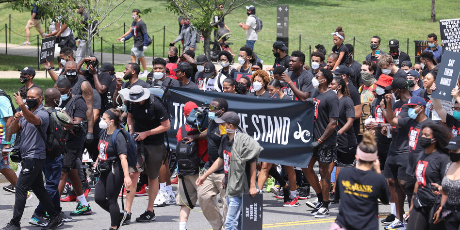 (IMG) Bild: NBA- und WNBA-Profis bei einer Black-Lives-Matter-Demo in Washington, Juni 2020