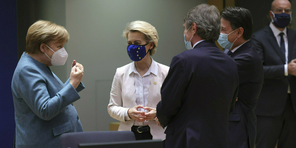 mit Merkel und Spahn gestellt – während des deutschen EU-Vorsitzes von Juli