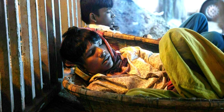 (IMG) Bild: Guter Schlaf ist für viele ein Privileg: Ein Träger in Dhaka, Bangladesh, schläft in seinem Korb