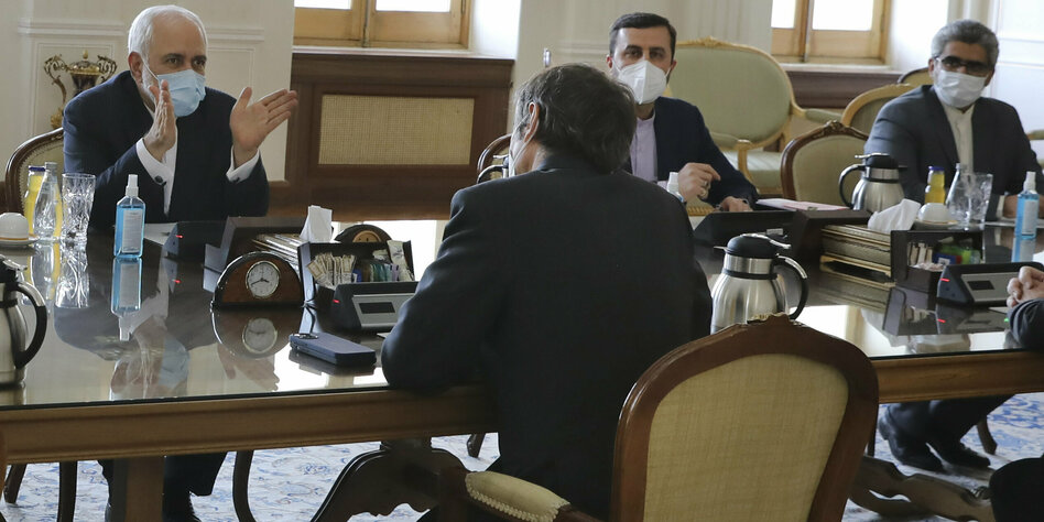 (IMG) Bild: Gespräche in Teheran: Irans Außenminister Zarif (links), IAEA-Chef Grossi (von hinten)