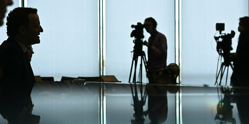(IMG) Bild: Jens Spahn während einer Pressekonferenz – er hat gerade ein größeres Problem mit der Presse