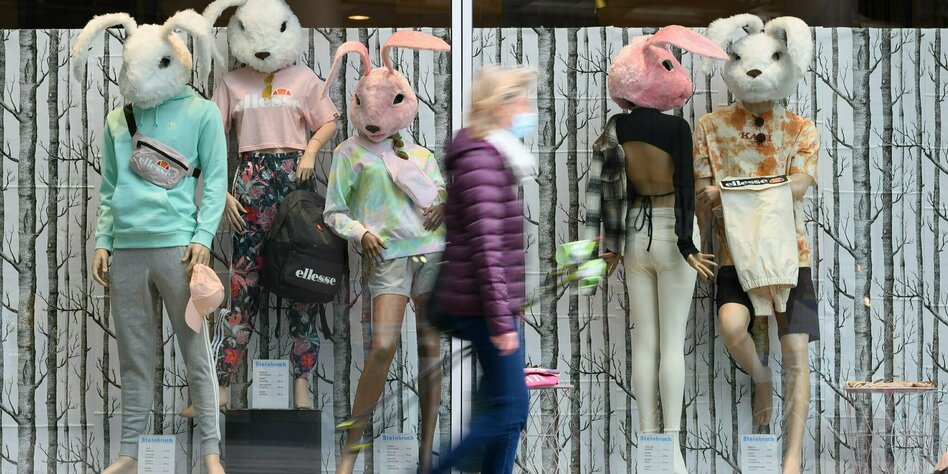 (IMG) Bild: Warten auf KundInnen: modische Hasen im Schaufenster