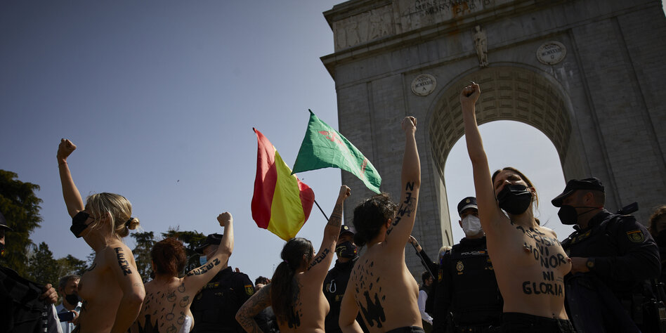 (IMG) Bild: Femen gegen Faschismus: Protest gegen die totalitäre Rechte in Madrid am 28.März 2021