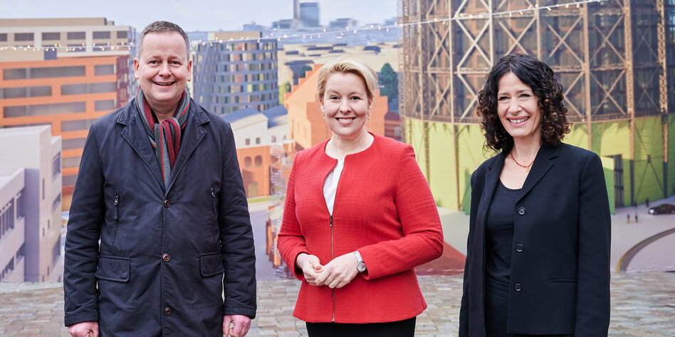 (IMG) Bild: Rot-Grün-Rot ist verhandelt: Klaus Lederer (Linke), Franziska Giffey (SPD), Bettina Jarasch (Grüne)