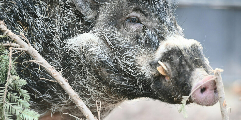 Notlage aufmerksam zu machen, ist das Pustelschwein von der Zoologischen