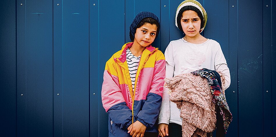 (IMG) Bild: Leben im Containerlager: Zainab (12 Jahre, r.) mit ihrer Freundin Nida (11)