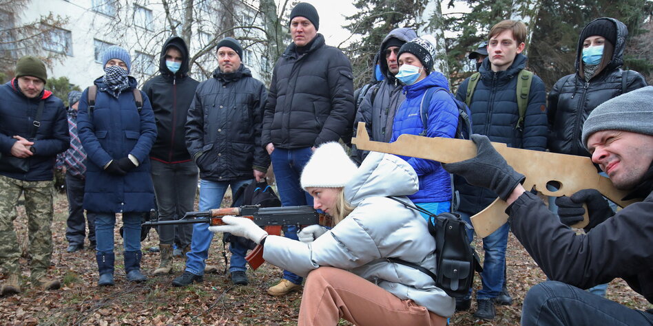 (IMG) Bild: Vergangenes Wochenende: Zivilisten nehmen an einer Militärübung in Charkiw in der Ukraine teil