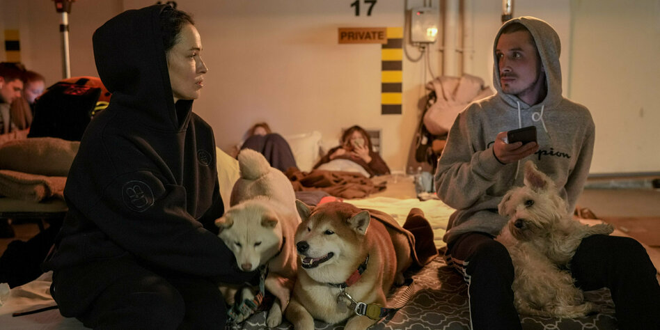 Schutzraum am Stadtrand von Kiew an. Die eine ist 75, die andere 30 Jahre