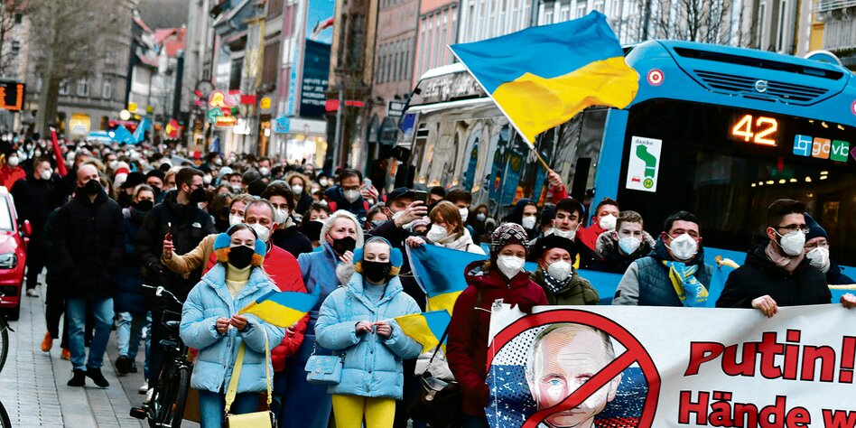 (IMG) Bild: Demonstration gegen den russischen Angriff auf die Ukraine in der Göttinger Innenstadt