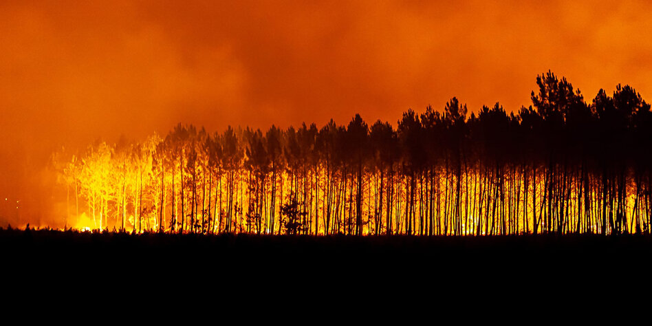 (IMG) Bild: Wahrscheinlich durch den Klimawandel verschlimmert: Waldbrand während der Hitze in Frankreich 2022