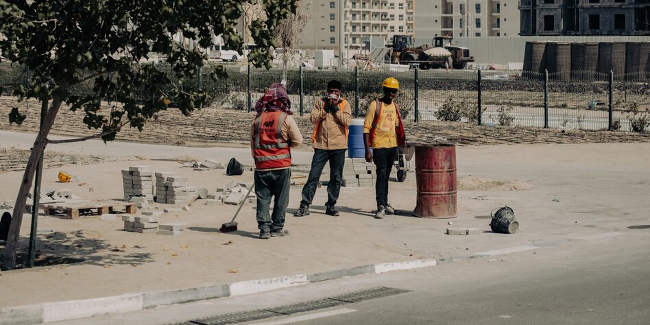 (IMG) Bild: Sie machen einen knüppelharten Job: Arbeiter in Doha, kurz vor dem WM-Start