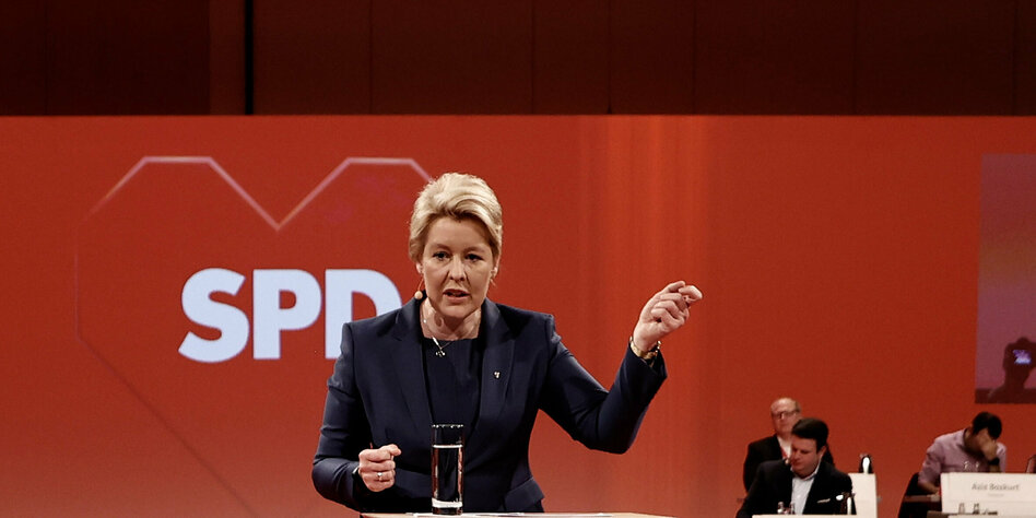 (IMG) Bild: SPD pur ist jetzt mal links: Franziska Giffey auf dem Parteitag am Samstag