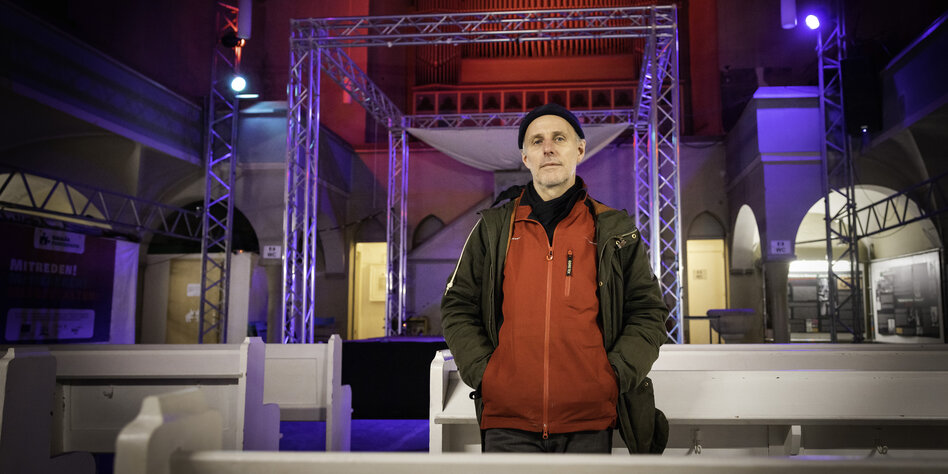 Es ist kalt in der Galiläakirche in Friedrichshain, dem Arbeitsplatz von