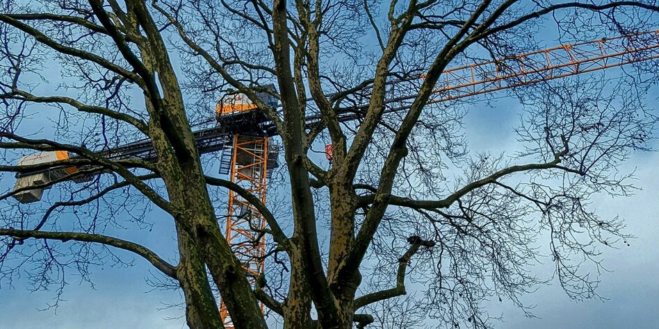 (IMG) Bild: Ein Kran steht schon da; die mächtige Platane am Bremer Weserdeich muss wohl bald weichen
