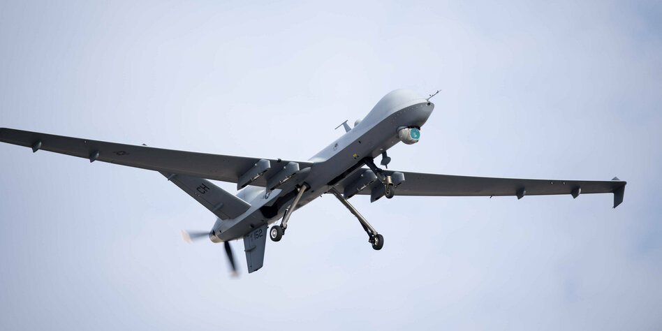 (IMG) Bild: US-Drohne vom Typ MQ-9. Eine solche ist mit einem russischen Kampfjet zusammengestoßen