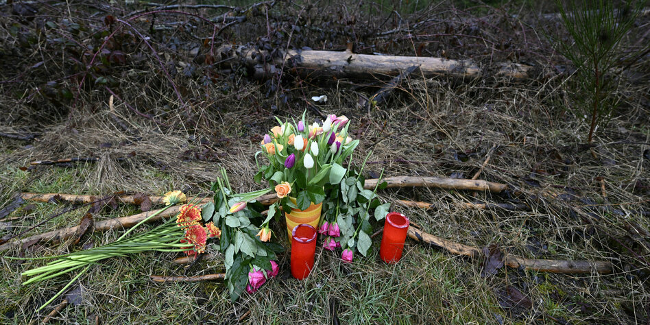 (IMG) Bild: Blumen und Kerzen am Fundort des getöteten Mädchens in Freudenberg
