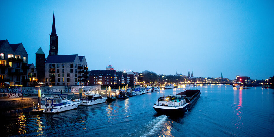 (IMG) Bild: Schöner Job: Binnenschiff auf der Weser in Bremen