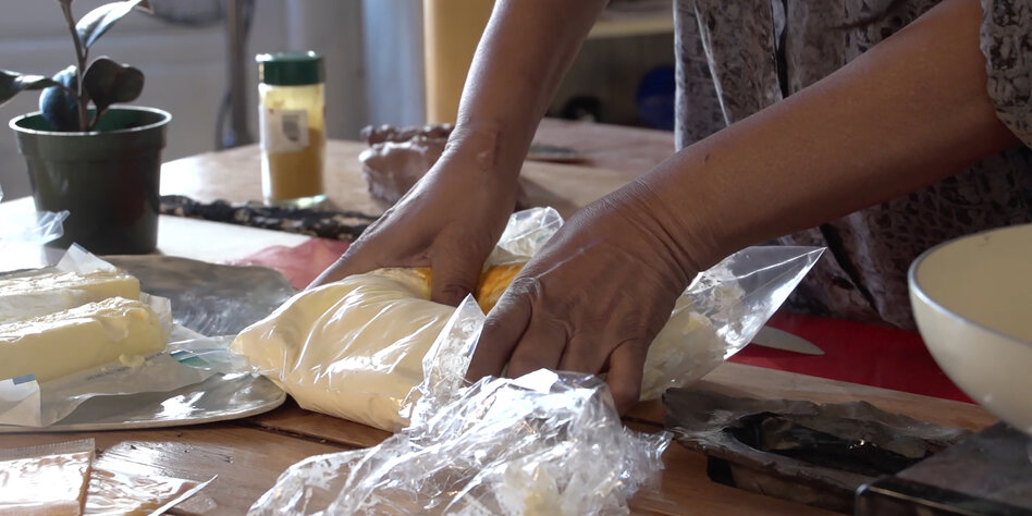 (IMG) Bild: Bearbeiten von Margarine im Kochvideo „Cooking with the erotic“ von Ilana Yacine Harris-Babou, 2016