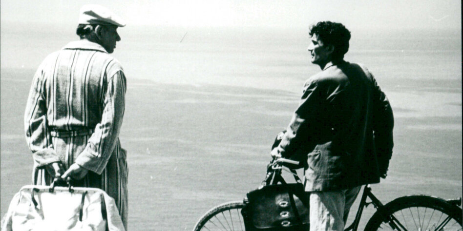 (IMG) Bild: Szene aus „Der Postmann Mario“: Mario (Massimo Troisi) bittet den chilenischen Dichter Pablo Neruda (Philippe Noiret), ihn die Kunst des Gedichtschreibens zu lehren