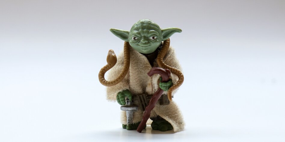 (IMG) Bild: Yoda Figur, sauber im Regal platziert