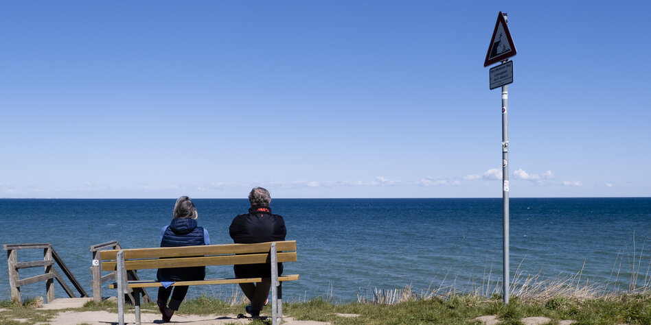(IMG) Bild: Ohne Dialog wird das Zusammenleben schwierig: zwei Menschen schauen an der Stohler Steilküste auf die Ostsee