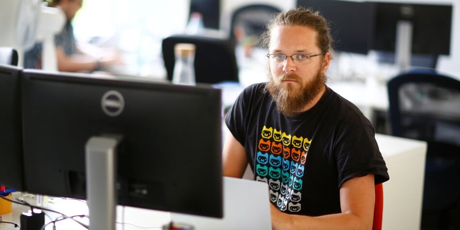 (IMG) Bild: Der Journalist Arne Semsrott bei der Arbeit im Jahr 2018