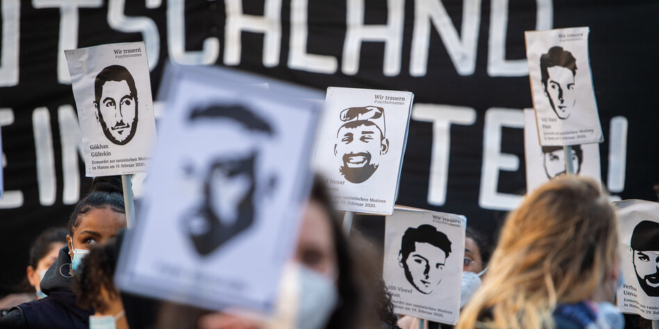 (IMG) Bild: Im Zentrum jedes Hanau-Gedenkens: die Opfer. Hier in Berlin 2021
