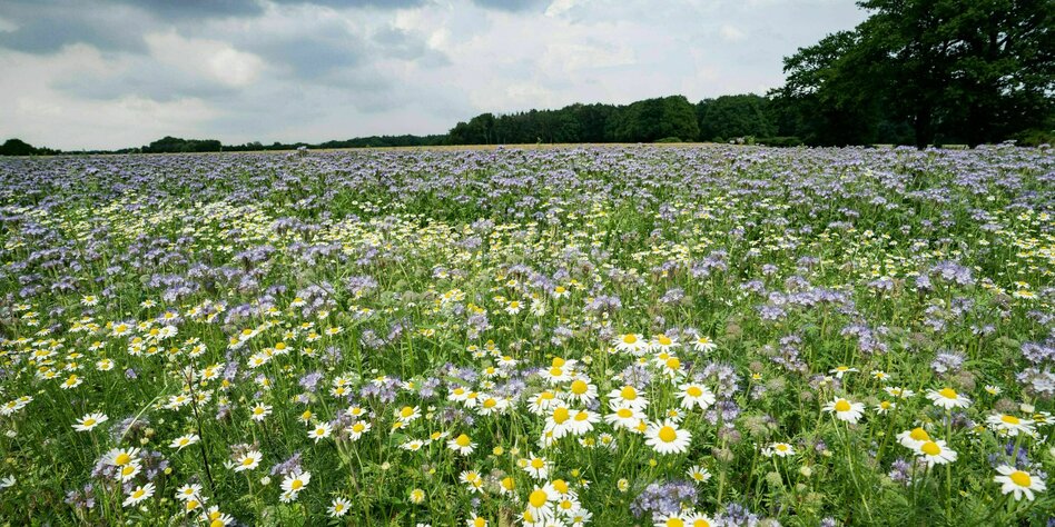 (IMG) Bild: Stillgelegte Ackerfläche mit blühenden Bienenweiden und Margeriten